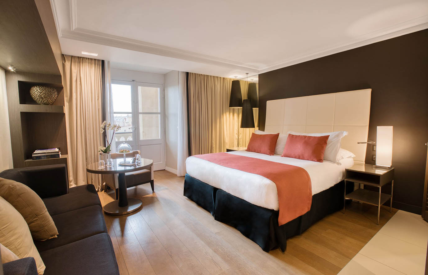Les chambres sont décorées avec des veinures de bois, des tons marins et un mobilier moderne pour créer un style français rafraîchissant.